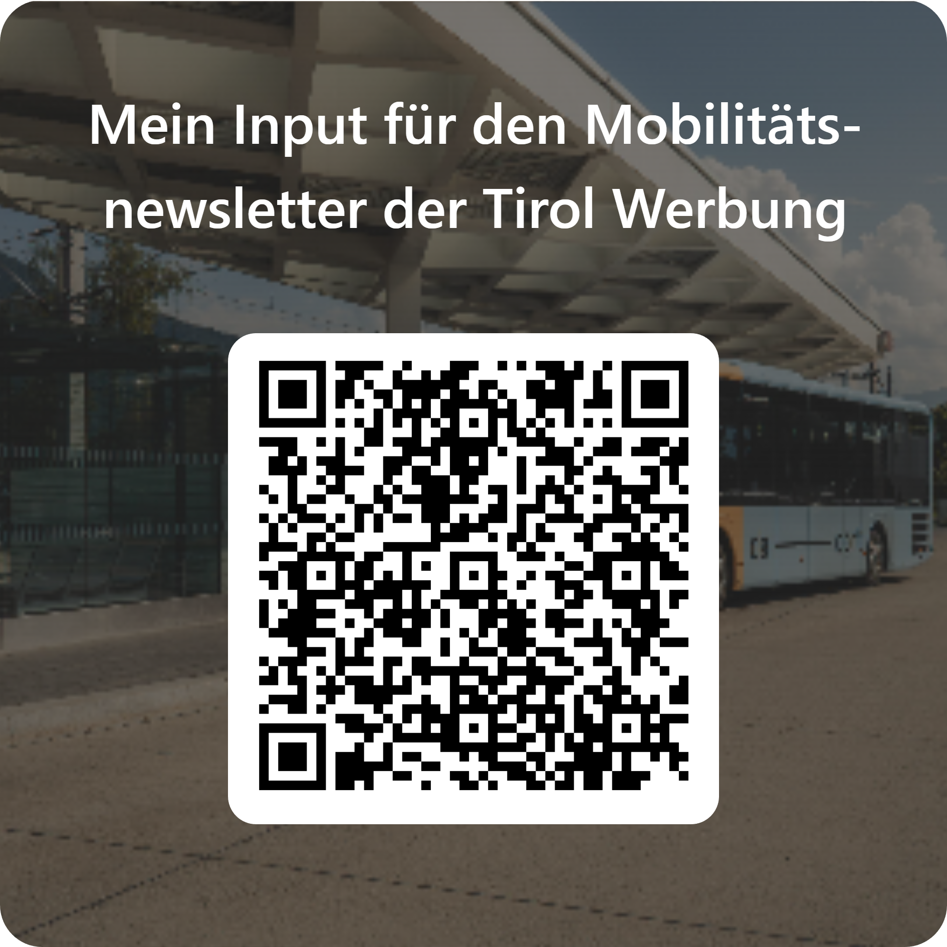 Sie haben einen spannenden Beitrag für den Mobilitätsnewsletter der Tirol Werbung? Reichen Sie Ihre Idee über den QR-Code oder den Link ein.